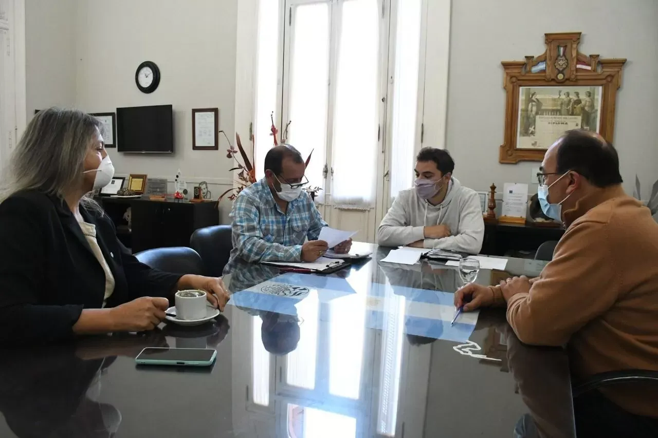 El intendente de Saladillo, José Luis Salomón acompañado por la secretaria de Gobierno, Viviana Rodríguez y el subsecretario de Seguridad Ciudadana, Gonzalo Gallego recibieron en la ciudad al subsecretario de Fiscalización y Control Policial Interior del Ministerio, Guillermo Calviño.