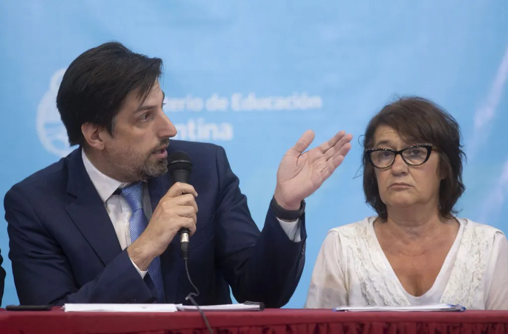 Los cinco gremios docentes con representación nacional y los funcionarios del Ministerio de Educación acordaron esta tarde un salario inicial mínimo de 23 mil pesos a partir de marzo y de 25 mil pesos desde el 1° de julio próximo, informó el ministro de Educación, Nicolás Trotta, quien aseguró que también se convino una suma extraordinaria de 4.840 pesos, que se abonará en cuatro cuotas de 1.210 pesos en abril, mayo, junio y julio. (Télam)