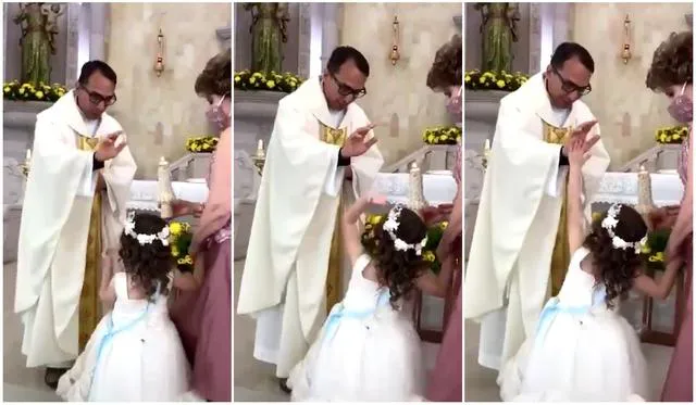 La niña, que se encontraba acompañada por su mamá, volvió a quedarse quieta, para recibir la bendición que le estaba dando el eclasiástico. Cabe destacar que el video recibió cientos de likes y compartidos, lo que lo hizo viral entre todas las producciones de las redes sociales.