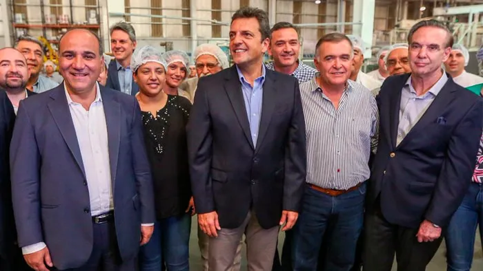 El líder del Frente Renovador, Sergio Massa, el gobernador tucumano, Juan Manzur, y el senador nacional, Miguel Ángel Pichetto, se mostraron juntos en el Complejo Alimenticio San Salvador S.A. en Tucumán. La jornada coincide con el