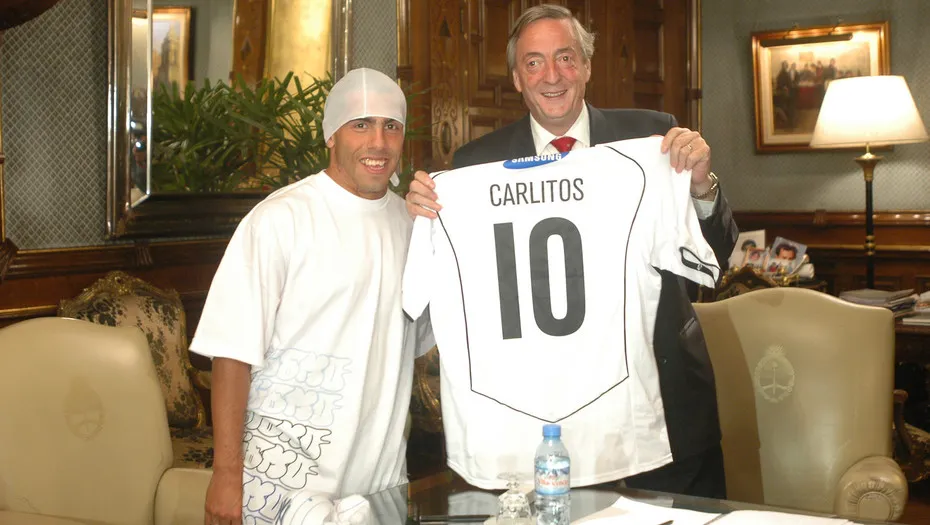 Tevez junto Néstor Kirchner cuando jugaba en el Corinthians. "A Néstor Kirchner le dije que si no jugara en Boca lo haría en Racing”, Carlos Tevez.
