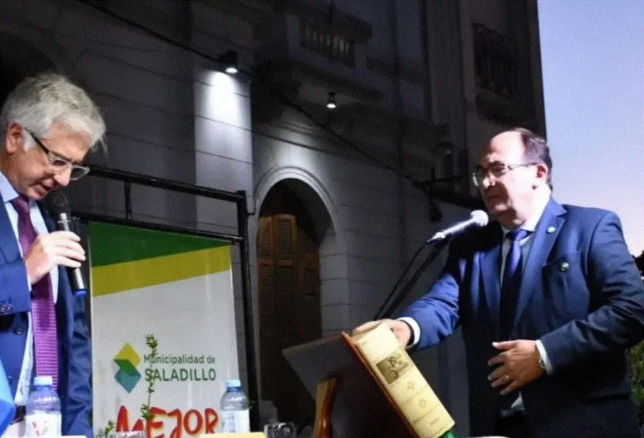 Frente al palacio Municipal el presidente del Honorable Concejo Deliberante Alejandro Armendáriz le tomó juramento al mandatario comunal, José Luis Salomón, ante la presencia de los ex intendentes Francisco Ferro y Carlos Antonio Gorosito, legisladores, funcionarios, concejales y vecinos. Señaló el intendente que seguirán trabajando con el gobierno nacional y provincial y que seguirá convocando a todos y todas a través del diálogo como parte de la convivencia democrática.